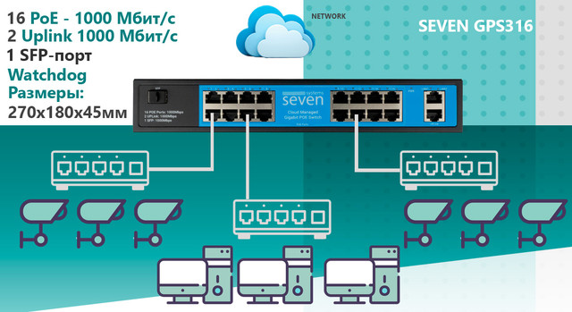 Преимущества облачного PoE свитча на 19 портов SEVEN GPS316