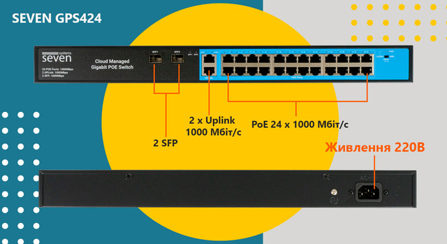 Хмарно керований гігабітний 28-ти портовий PoE комутатор SEVEN GPS424