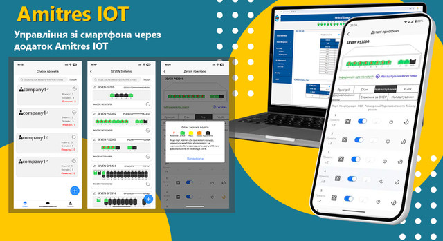 За допомогою цієї програми ви зможете не тільки отримувати інформацію про стан комутатора в реальному часі, але й віддалено керувати ним. Застосунок надає дані як про сам комутатор, так і про під'єднані до нього PoE-пристрої. Amitres IOT дає змогу контролювати роботу під'єднаних пристроїв, відстежувати їх кількість, моніторити мережевий трафік, здійснювати перезавантаження, перевіряти стан живлення й попереджати про можливі несправності. Крім того, застосунок обладнаний функцією спільного доступу, що дає можливість мережевим інженерам за потреби, ділитися керуванням проєктом із колегами.