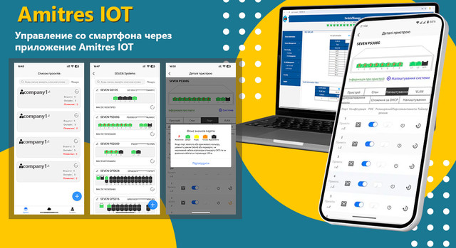 С помощью этого приложения вы сможете не только получать информацию о состоянии коммутатора в реальном времени, но и удаленно управлять им. Приложение предоставляет данные как о самом коммутаторе, так и о подключенных к нему PoE-устройствах. Amitres IOT позволяет контролировать работу подключенных устройств, отслеживать их количество, мониторить сетевой трафик, производить перезагрузку, проверять состояние питания и предупреждать о возможных неисправностях. Кроме того, приложение оснащено функцией совместного доступа, что дает возможность сетевым инженерам делиться управлением проектом с коллегами при необходимости.